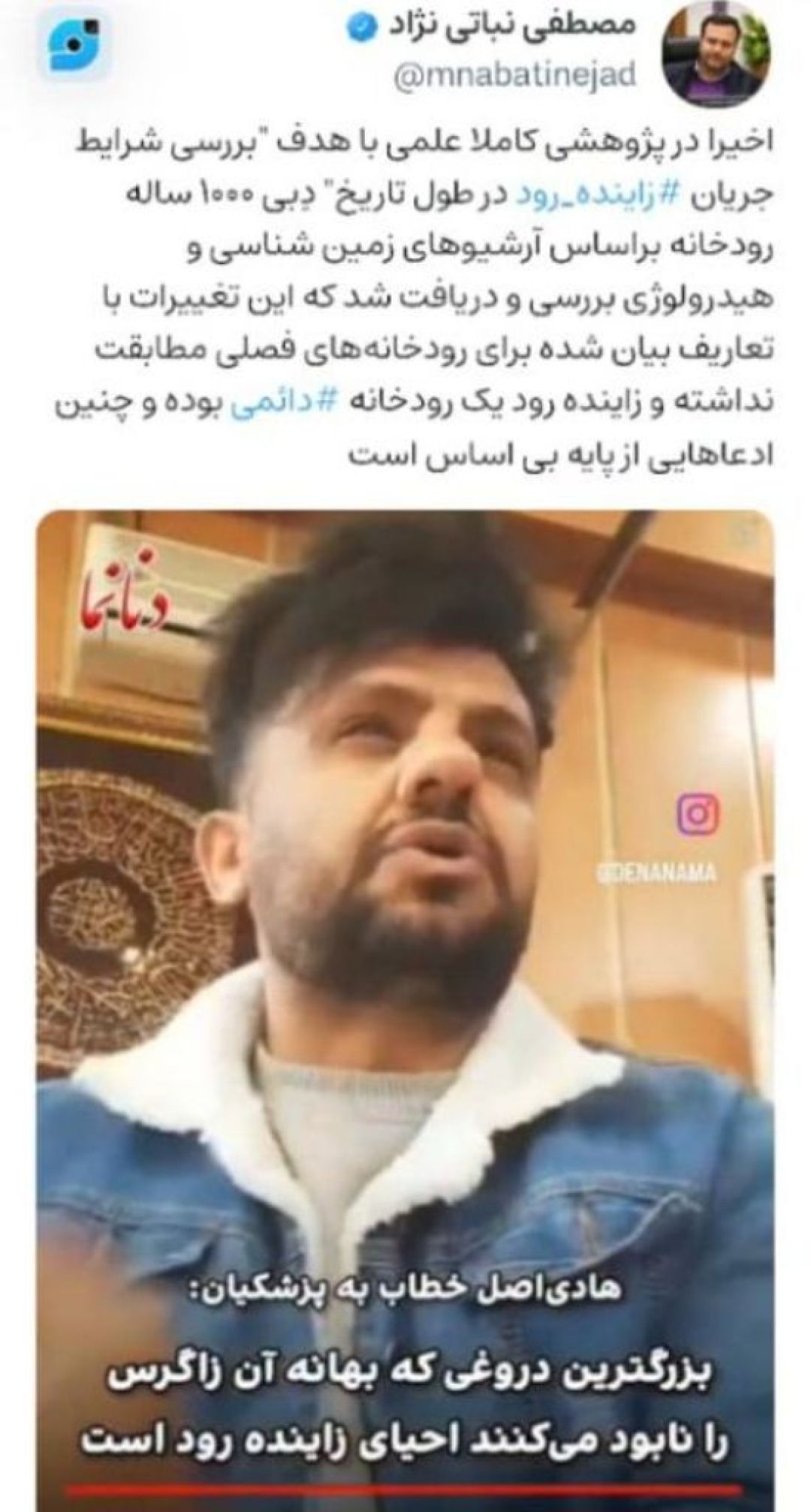 بعد از صحبتهای سید جواد هادی اصل، فعال زیستمحیطی خطاب به رئیس جمهور و ادعایی مبنی بر فصلی بودن زایندهرود؛ مصطفی نباتی نژاد عضو شورای اسلامی شهر اصفهان در پستی به این موضوع واکنش نشان دادهاست.
