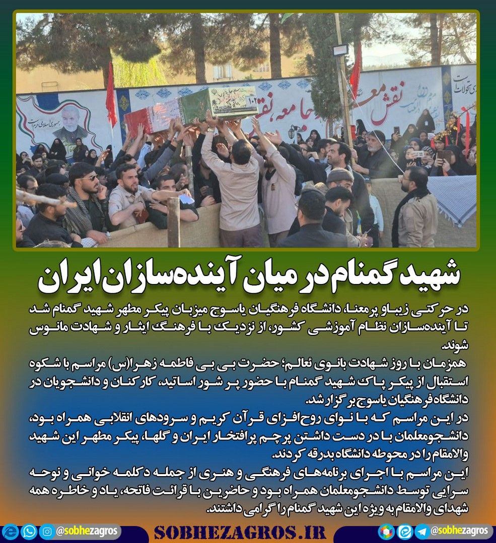 در حرکتی زیباو پرمعنا، دانشگاه فرهنگیان یاسوج میزبان پیکر مطهر شهید گمنام شد تا آیندهسازان نظام آموزشی کشور، از نزدیک با فرهنگ ایثار و شهادت مانوس شوند.(اینجا)