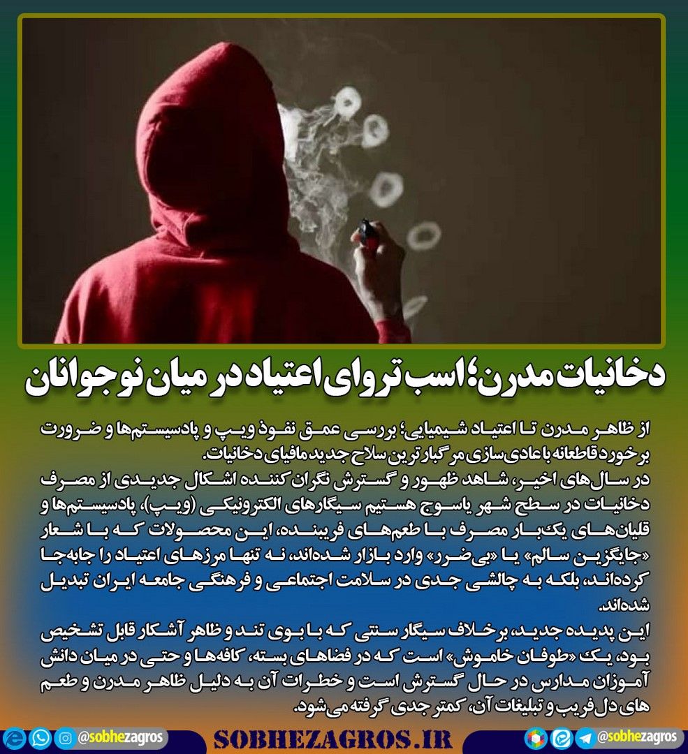 از ظاهر مدرن تا اعتیاد شیمیایی؛ بررسی عمق نفوذ ویپ و پادسیستمها و ضرورت برخورد قاطعانه با عادیسازی مرگبارترین سلاح جدید مافیای دخانیات.(اینجا)