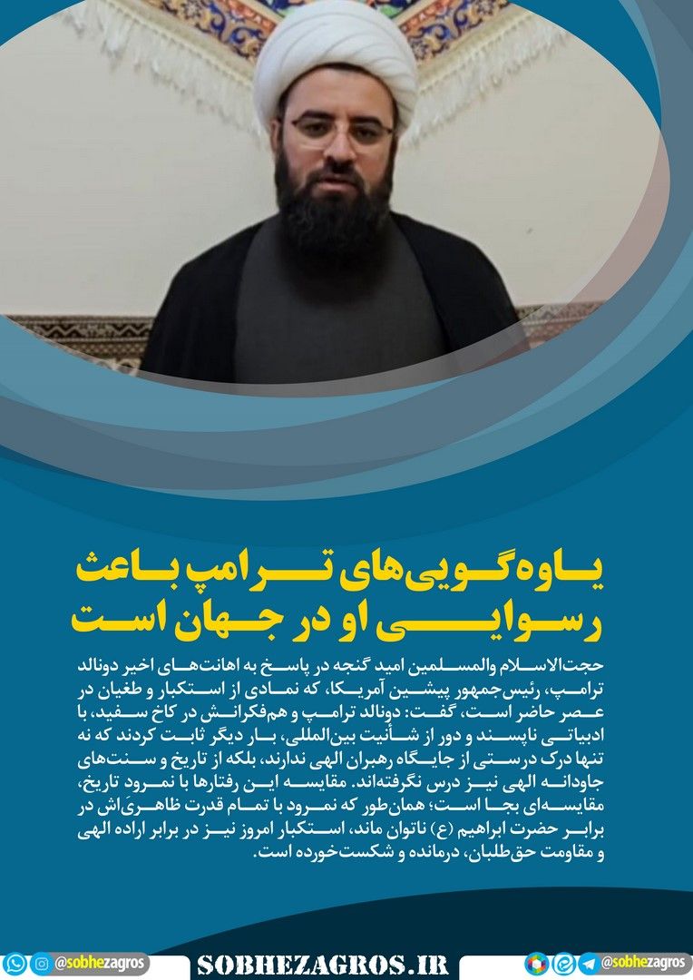 امام جمعه باشت گفت: سخنان کفرآمیز و یاوهگوییهای ترامپ، در واقع آتشی است که در خانه خودشان میافروزند و موجب رسوایی بیشتر آنان در نزد ملتهای بیدار جهان میشود.(اینجا)