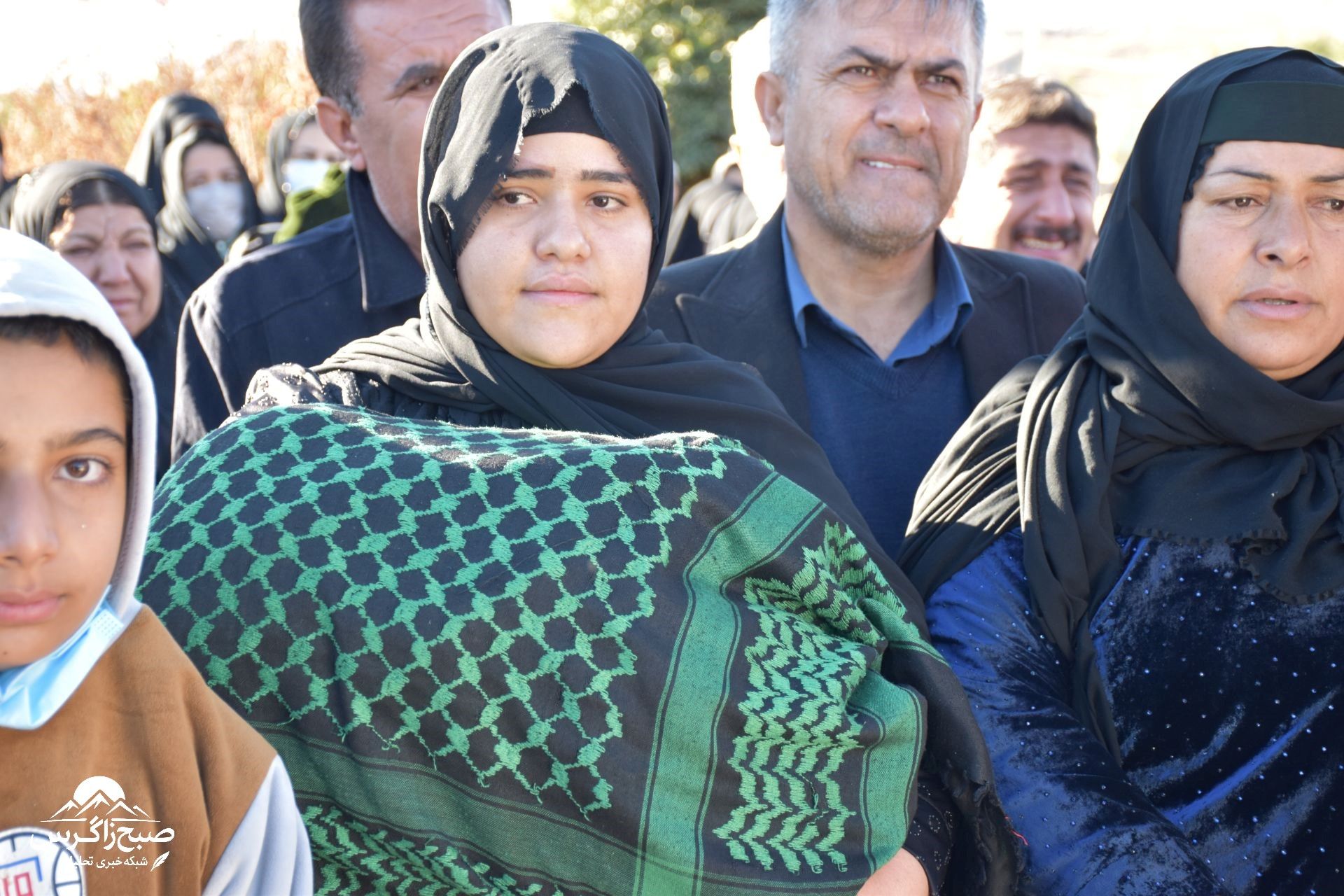 دستۀ تشییع، رودی خروشان از انسانهایی شد که دلهایشان در سینه برای شهید میتپید. پیرمردی با دستان لرزان بر تابوت میکوبید و فریاد میزد: «آفرین بر غیرتت، پسر!»کودکی بر دوش پدر، دستهگلی را به سوی تابوت دراز کرده بود. مادری با چشمانی اشکبار، انگار پسر خود را بدرقه میکرد. حضور گسترده اقوام مختلف استان، با لباسهای محلی رنگارنگ، صحنهای چشمنواز و متحد خلق کرده بود؛ وحدتی که شهید برای آن جان داده بود.