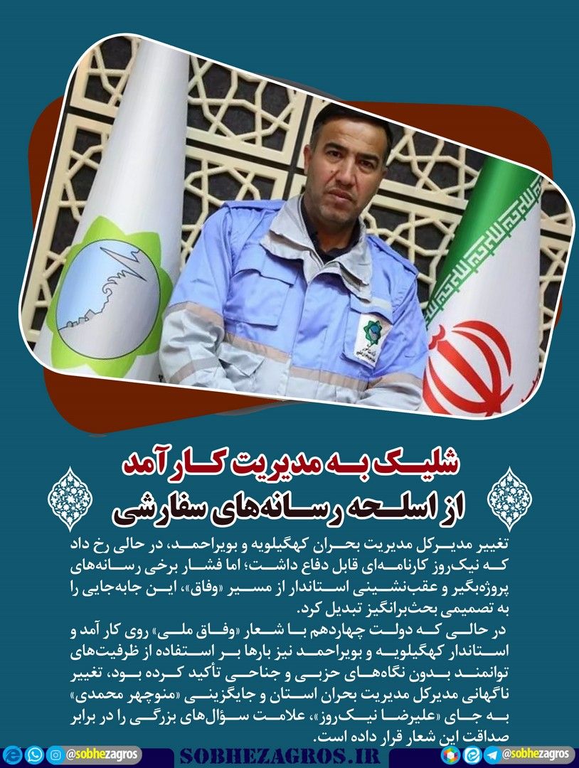 تغییر مدیرکل مدیریت بحران کهگیلویه و بویراحمد، در حالی رخ داد که نیکروز کارنامهای قابل دفاع داشت؛ اما فشار برخی رسانههای پروژهبگیر و عقبنشینی استاندار از مسیر «وفاق»، این جابهجایی را به تصمیمی بحثبرانگیز تبدیل کرد.(اینجا)