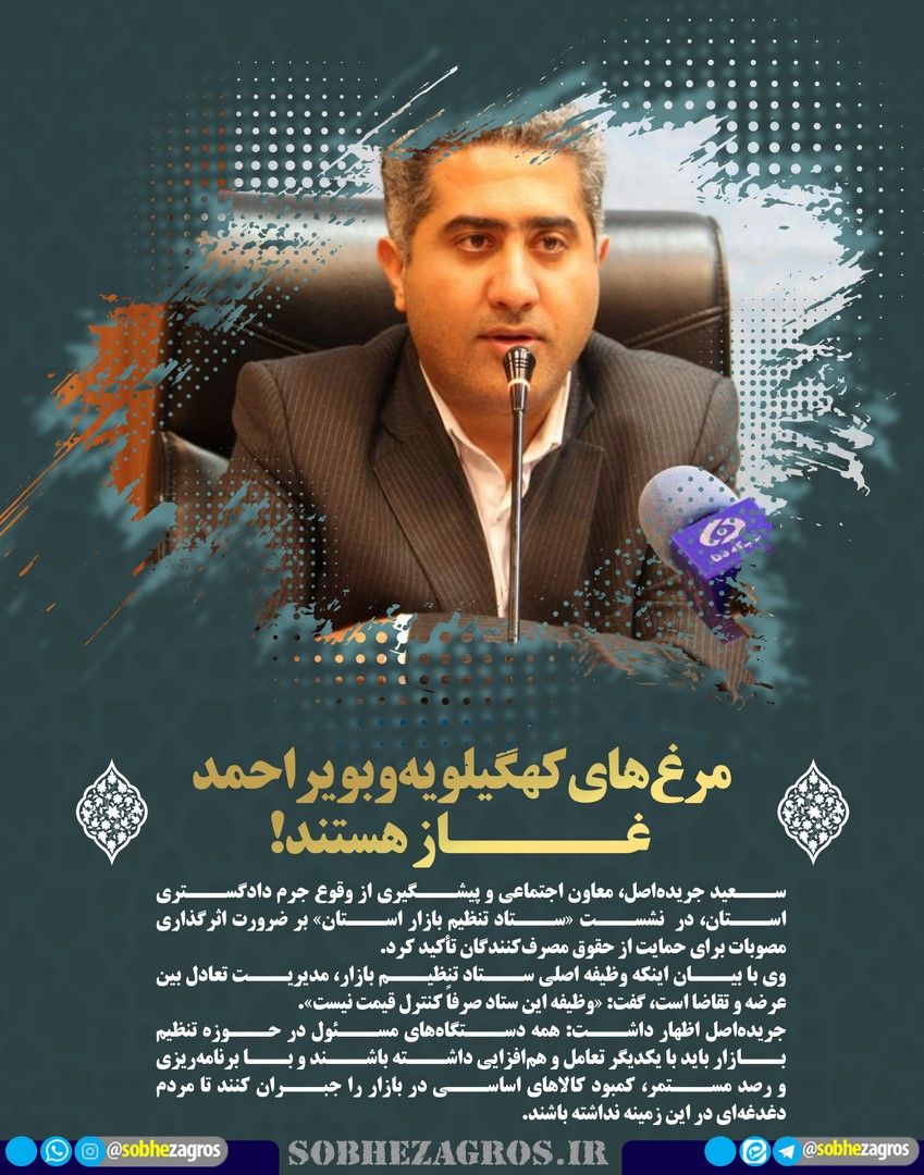صبح زاگرس در ان قسمت از عکس نوشته های خود به مسئله گرانی مرغ در کهگیلویه و بویراحمد و انتقاد معاون پیشگیری از جرم دادگستری استان نسبت به این مسئله اختصاص داده شده است.