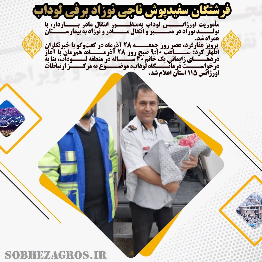 مأموریت اورژانس لوداب بهمنظور انتقال مادر باردار، با تولد نوزاد در مسیر و انتقال مادر و نوزاد به بیمارستان همراه شد.(اینجا)