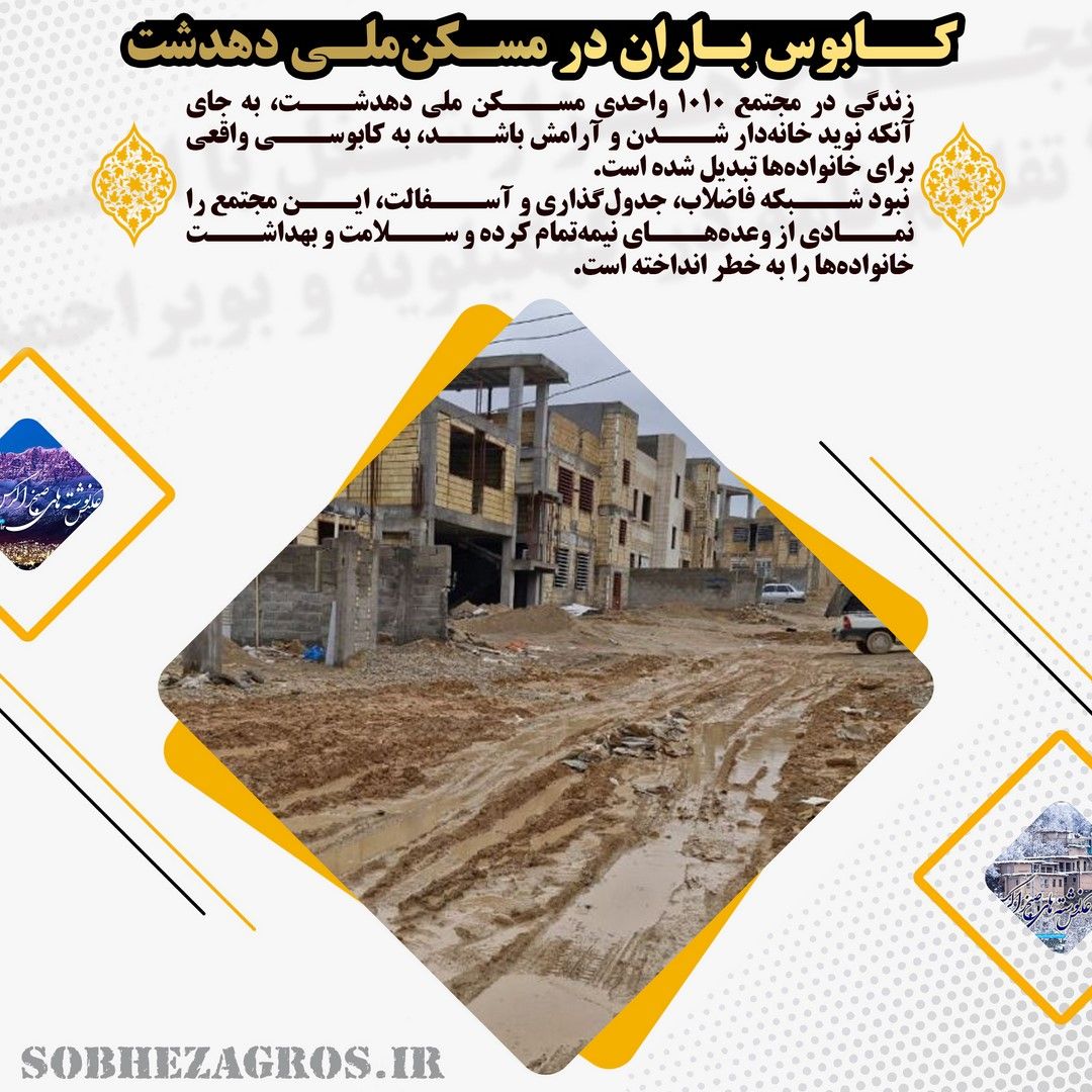 صبح زاگرس در این قسمت از عکس نوشته های خود به کابوس در مسکن ملی دهدشت بعد از بارندگی ها اختصاص داده شده است.