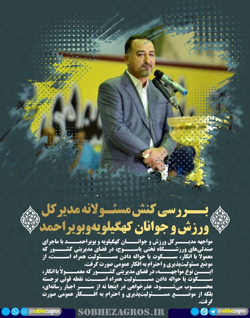 مواجهه مدیرکل ورزش و جوانان کهگیلویه و بویراحمد با ماجرای صندلیهای ورزشگاه تختی یاسوج، در فضای مدیریتی کشور که معمولاً با انکار، سکوت یا حواله دادن مسئولیت همراه است، از موضع مسئولیتپذیری و احترام به افکار عمومی صورت گرفت.(اینجا)