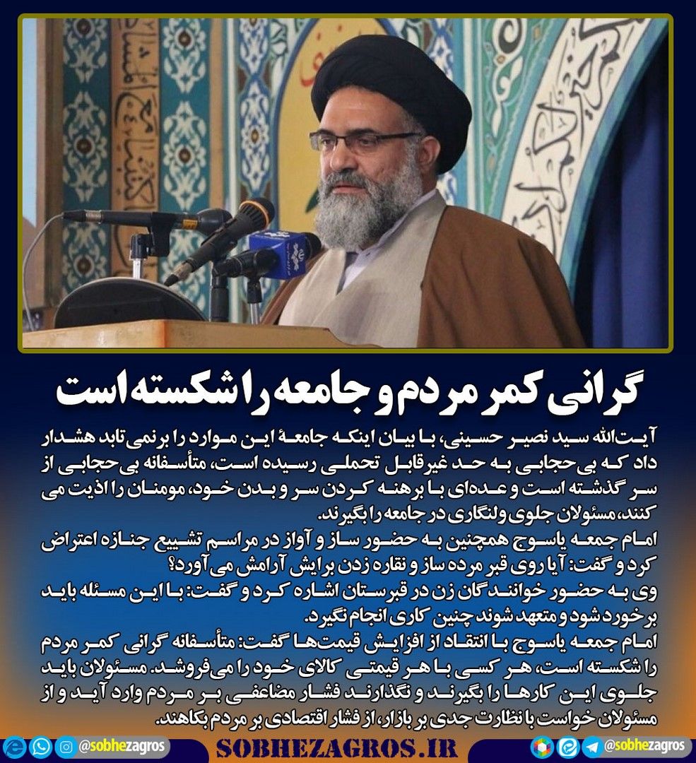 امام جمعه یاسوج گفت: متأسفانه گرانی کمر مردم را شکسته است، هر کسی با هر قیمتی کالای خود را میفروشد. مسئولان باید جلوی این کارها را بگیرند و نگذارند فشار مضاعفی بر مردم وارد آید(اینجا)