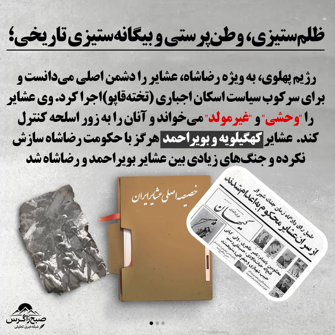 به گزارش پایگاه خبری تحلیلی «صبح زاگرس» با مرور اسناد تاریخی به روایت عکس نوشته، به تبیین ابعاد سرکوب سیستماتیک عشایر ایران، به ویژه قوم لر و بویراحمدیها، توسط رژیم پهلوی بود.