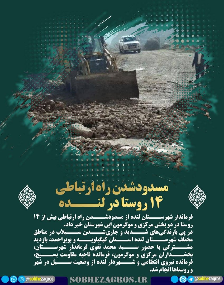 فرماندار شهرستان لنده از مسدودشدن راه ارتباطی بیش از ۱۴ روستا در دو بخش مرکزی و موگرمون این شهرستان خبر داد.(اینجا)